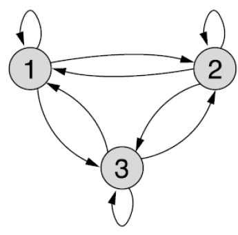 | 상태 전이 확률 | ⁻ 오늘 비가 왔을 때 내일 날씨가 맑을 확률 |