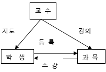 • (신규)한쪾 개체의 키 애트리뷰트를 키값으로, 다른쪽의 키 애트리뷰트를 외래키로 (2개 외래키) |