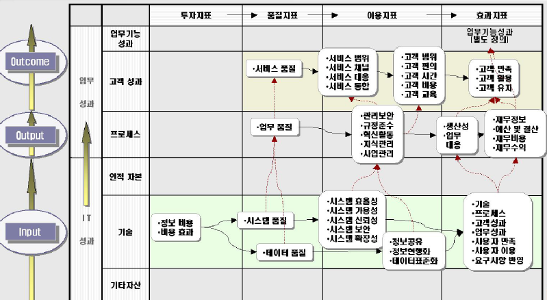 - 주요 IT 사업의 성과와 업무 목표달성에 공헌 정도를 측정하기 위한 프레임워크