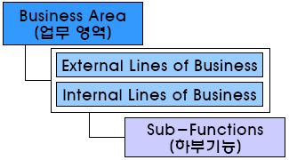 Business Reference Model 업무에 대한 공통적인 명칭 및 분류 기준으로 조직이 아닌 기능 중심으로 접근하고다른 참조모델 수립의 기준 자료로 활용되는 업무 참조모형 |