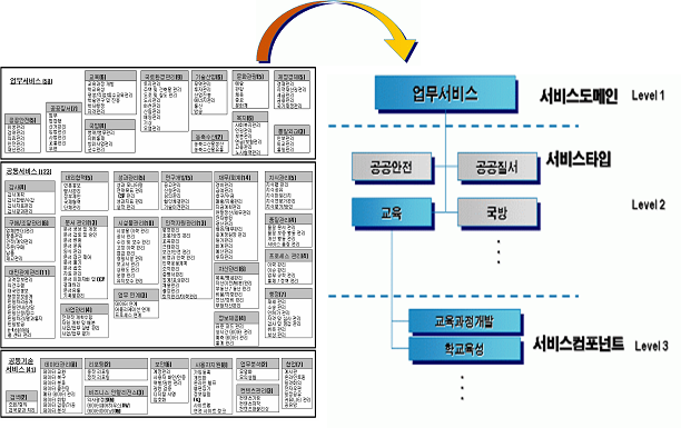 기관의 고유한 업무 수행과 사업 실행을 지원하는 서비스 도메인 정부부처의 업무및 사업 목적에 부합하고 업무규칙 및 절차를 포함한 서비스 컴포넌트 집합 |