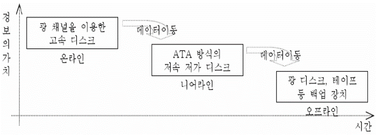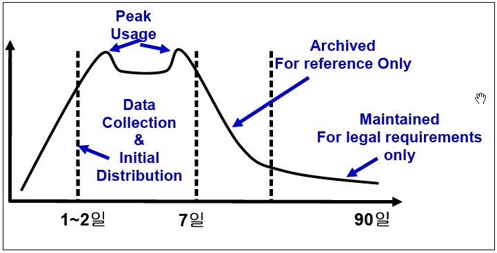- 시간이 흐를수록 정보의 가치는 떨어지기 때문에 데이터 가치에 따른 차별화된 관리 수행