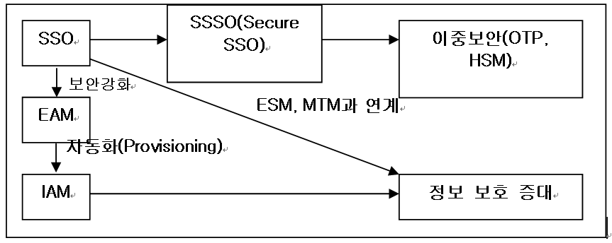 - 관리적 편의성이 아닌 사용자의 시스템 접근 용이성에 대한 고려에서 시스템 연구를 진행 - 다양한 응용시스템의 도입에 따른 User Provisioning 작업에 대한 관리비 상승에 따른 IAM 시장의 활성화. |