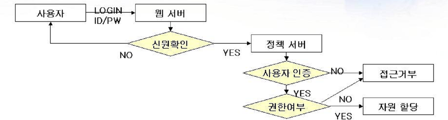 - 인증을 통해서 미리 설정된 접근제어 권한을 가지고 어플리케이션 및 서버에 접근함