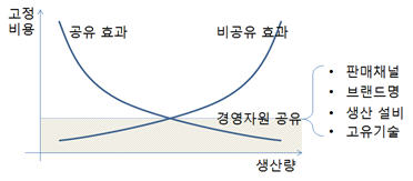 공유자원 : 판매채널, 브랜드명, 생산설비, 고유기술, 경영 노하우 등. |
