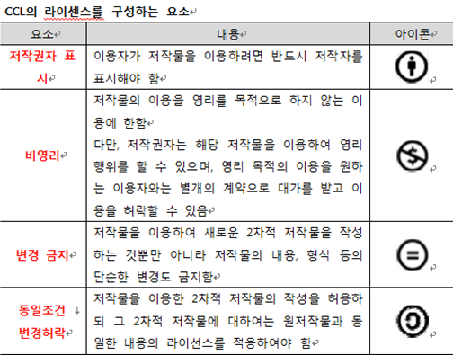- - 저작권자가 자신의 저작물에 대한 이용방법 및 조건을 표시하는 일종의표준약관이자 저작물 이용 허락표시