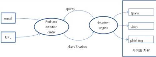 - - 메일 트래픽 정보를 수집하고, 배포 패턴으로 위험성을 분류하여 필터링 하는 스팸 및 비업무 차단 솔루션 방식의 순환패턴 방지 기술