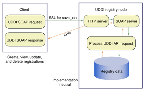 - 레지스트리 서버의 SOAP 서버는 UDDI SOAP 메시지를 관리, 처리
