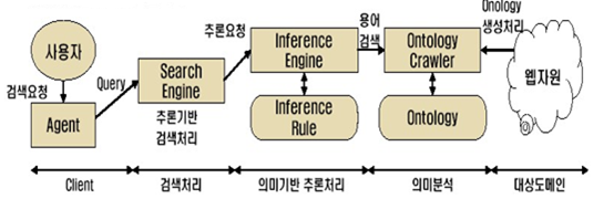 - 검색엔진은 추론엔진을 통해 추론규칙과 온톨로지를 검색하여 해당 도메인 내의 정확한 정보를 추출